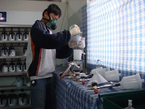 車(chē)身涂裝技能大賽面漆噴涂比賽現(xiàn)場(chǎng)